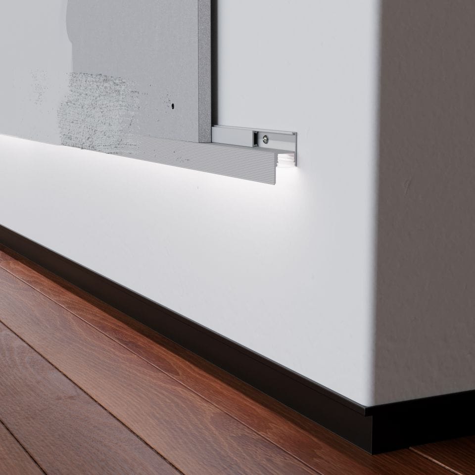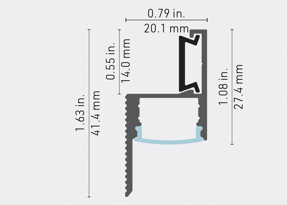 A cove without a cove, and accent extrusion for mounting special and or mirror. Go beyond the traditional idea of a 6x6 or 9x9 box to create a cove light. The 1540 profile allows you to create a cove detail with only a depth of 5/8 of an inch. This mud-in aluminum channel fits with both 5/8-inch and 1/2-inch drywall with the help of a simple clip that snaps into place. This lighting solution creates ceiling coves, wall coves, mid-wall applications, tray ceiling lighting, and highlights around and into corners.