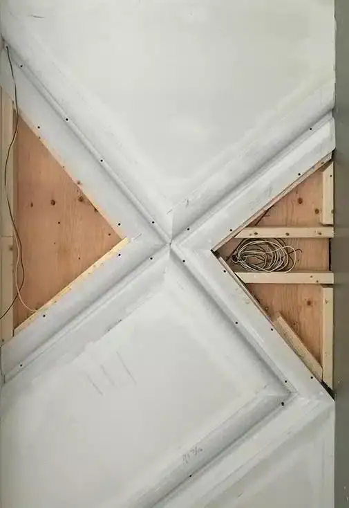 • Shape made of architectural-grade extruded polystyrene foam for stiffness and a high R-factor, exterior surface reinforced with fiberglass for rigidity, finished in white plaster that is primable and paintable like a regular gypsum panel.