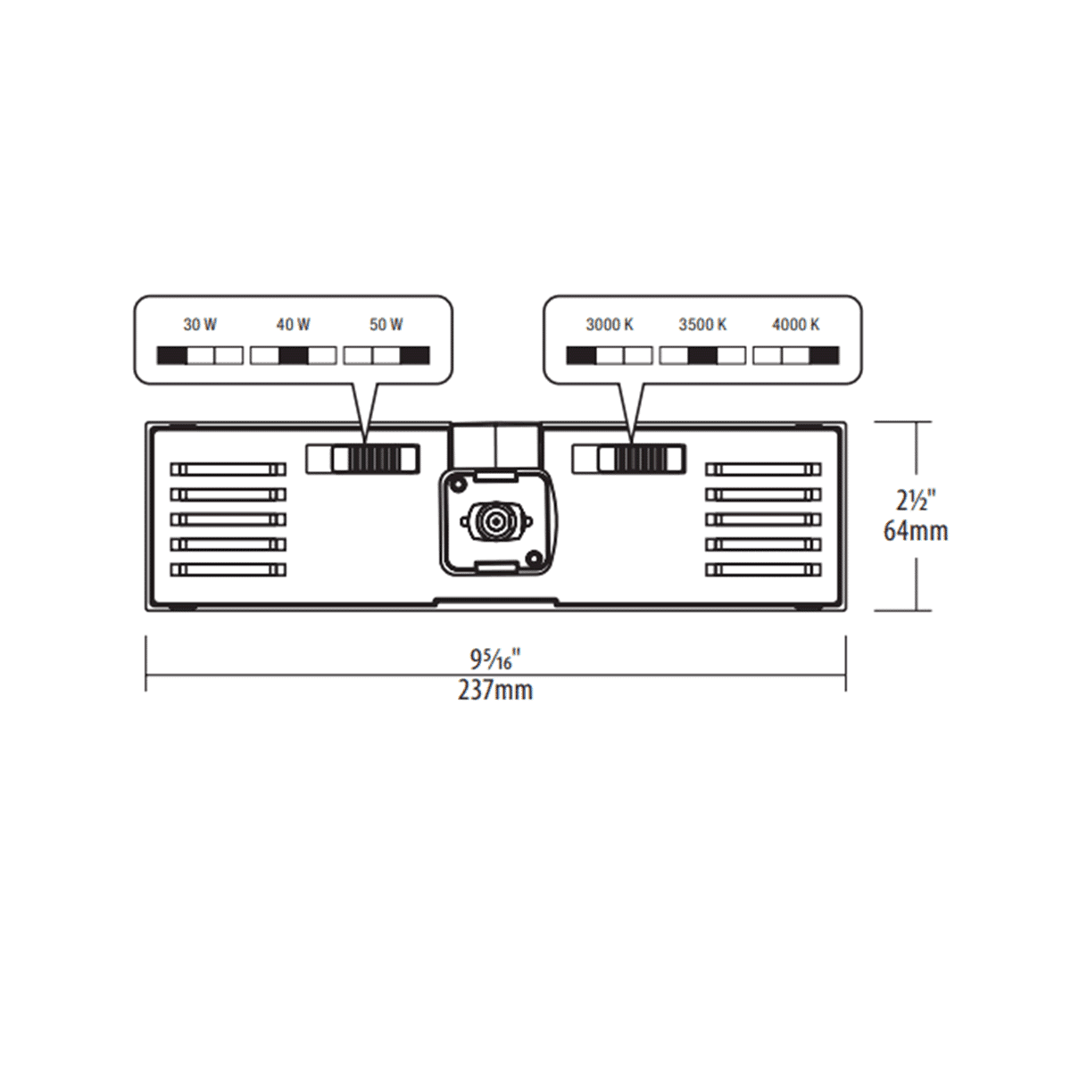 • LED CharacteristicsHigh powered Samsung LED chips maintains uniform intensity with a typical luminous flux of 5000 lumens at 50W, with a minimum CRI of 90+. Color temp switch on the back selects between 3000K / 3500K / 4000K nominal CCTs. Driver has a 0.98 power factor and a max 20% THD.