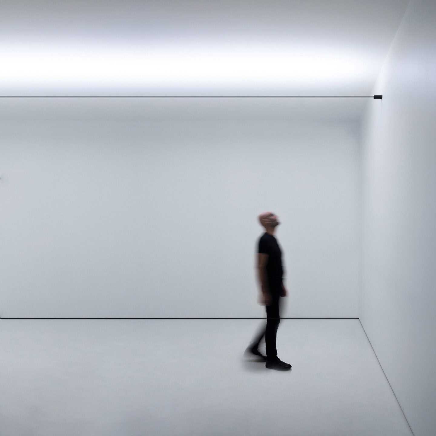 Infinito is Davide Groppi's award winning system .An ultra-thin strip of special stainless steel just 18 mm wide cuts the space to produce indirect light. Infinito can be adapted to various situations, stretched from wall to wall or ceiling to floor.