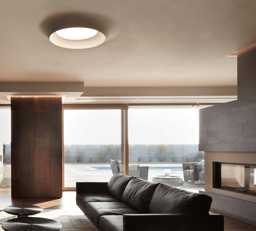 Damp location rated recessed ceiling light fitting for indoor use. made of painted plaster to totally integrate within the architecture. several lighting kits available to be installed in the light fitting to create different scenographies.