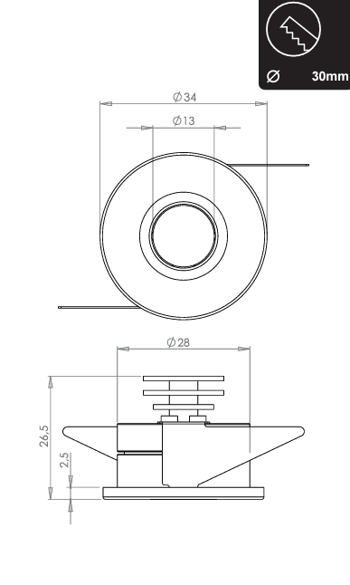 • Dimensions : Diameter 34 mm, Overall Height 26.5 mm.