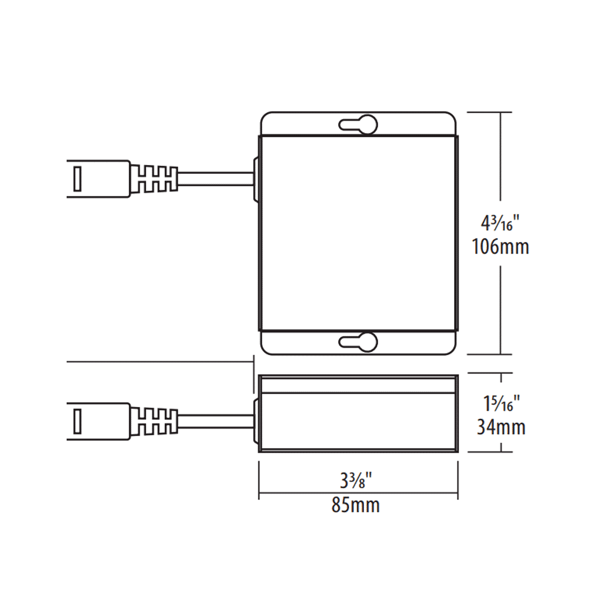 • LED DriverExtruded aluminum hardwire box with 300mA dimmable class II electronic LED driver with 100-135V AC input. Includes an 18″ FT6 rated cable with DC 2.1 connector between driver and fixture approved for use in plenums and suspended ceilings.