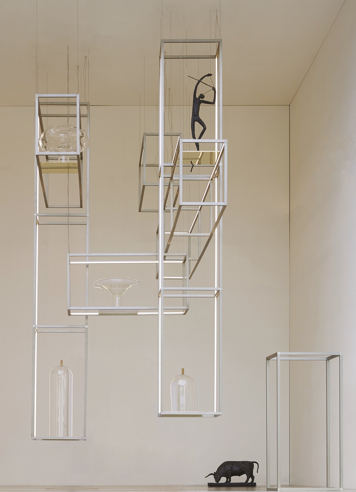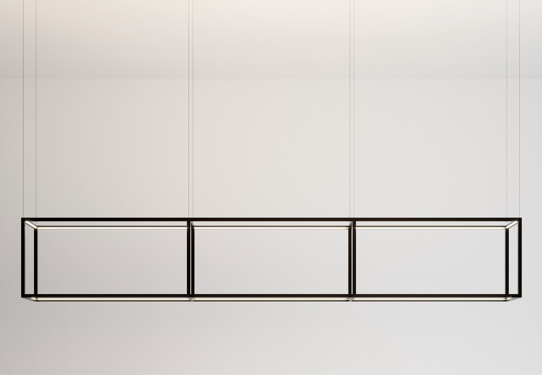 This pendant system is a factory made configuration based on the 13D Angolo extrusion. This system can be a pendant, wall or floor, custom assembled to your sketch!