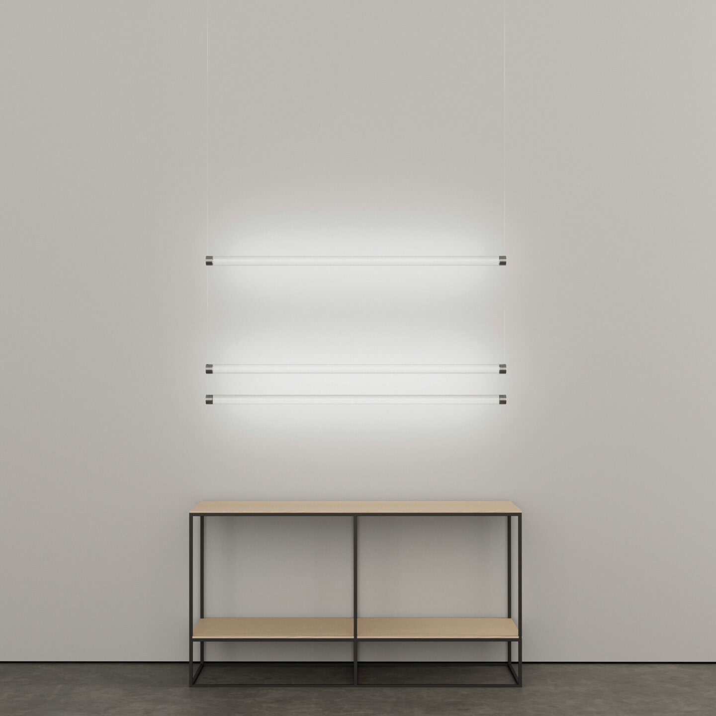 Magia is the new modular suspension lighting system that can be adapted to suit the different heights of the rooms. In this case, the lens is not used to focus, but to modify the vision and perception of the object.