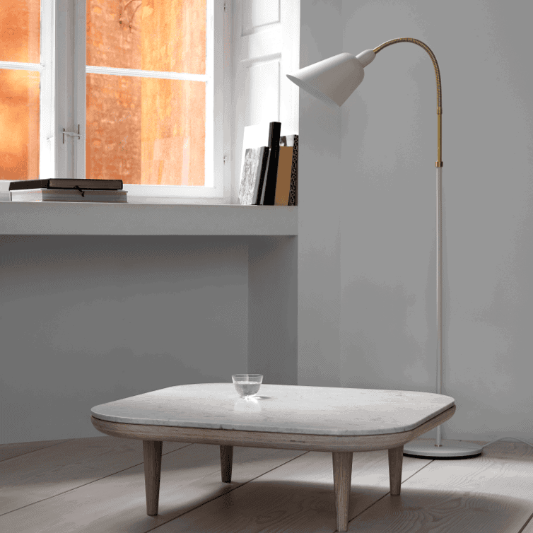 Material: Base in satin polished brass or satin polished steel, always with cast iron interior. Flexible stem in satin polished brass or satin polished steel. Shade in satin polished brass or lacquered aluminum. Natural metals are not coated and will patina with time . Fabric covered cord.