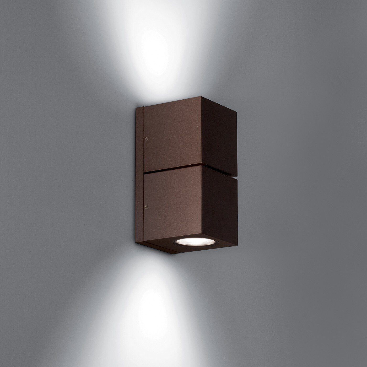Compact wall luminaire with light emission on two sides for exterior or interior use