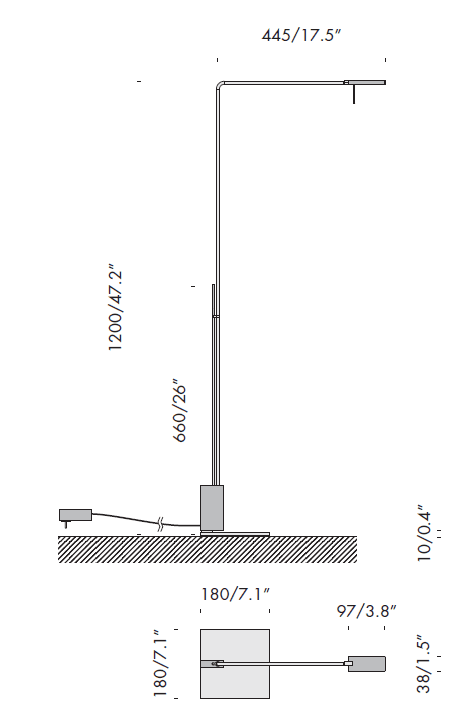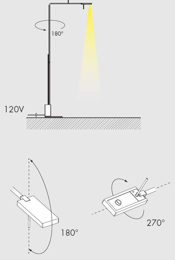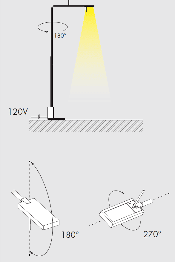 • Rod, adjustable by 180° on the vertical axis, 120x241x10mm/4.7×9.5×0.4’’ steel base with