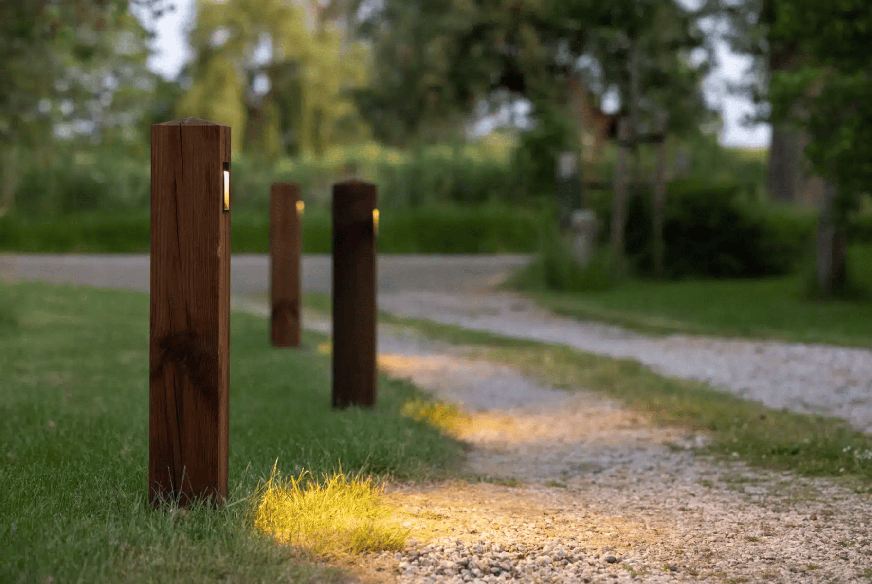 Light source: TBL path light module Available light colors: 2,700K (extra warm white), 4,000K (cool white) and amber (593nm) Wood types: Accoya, douglas (on footrest only), oak or chestnut Fixture color: Gray RAL 7016