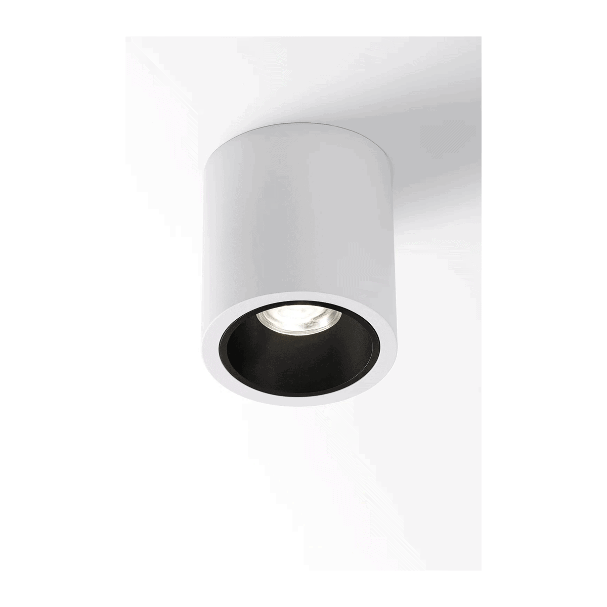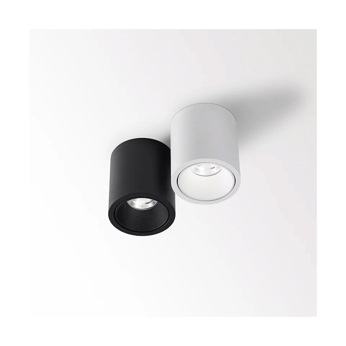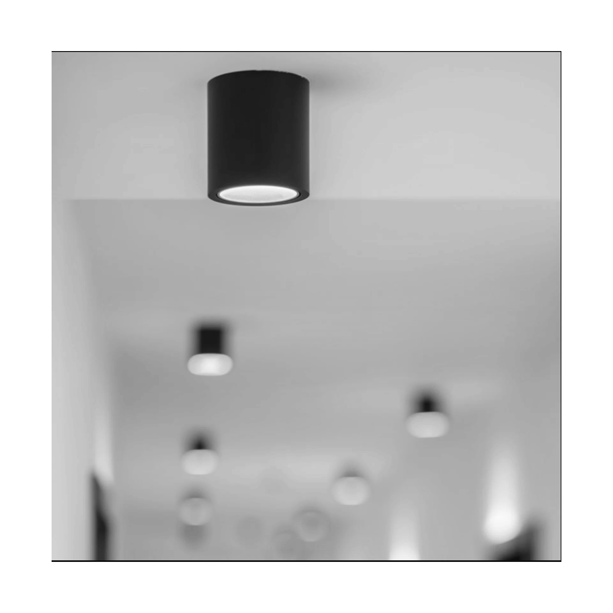 What once began as a cubic luminaire is now an elaborate family of surface mounted and pendant luminaires, both cube and cylinder shapes. Though different in shape, still uniform in look, as both shapes have a deeper recessed LED module with a conical, colored insert in front. While the deeper recessed LED module reduces the glare, the choice in color creates possibilities for playful and attractive lighting solutions.